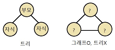 정확히는 트리는 그래프의 한 종류이다. 2-1을 보자.