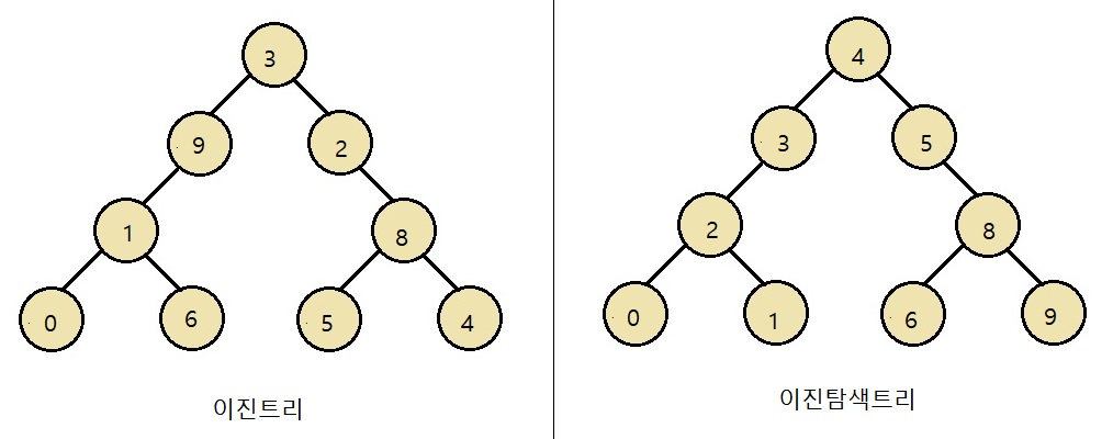 이진탐색트리(BST Binary Search Tree)는 이진 트리에서 현재 노드보다 작은 값은 왼쪽, 큰 값은 오른쪽 노드로 가는 조건이 있는 트리이다.