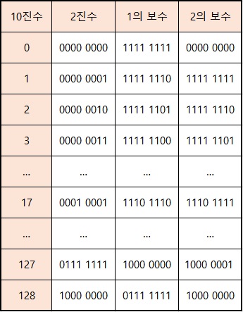 그 다음 양수라면 \(2^7\) 자리에는 0이, 음수라면 1이 와서 앞의 7칸에 들어있는 수가 양수인지 음수인지 알수 있게 한다.