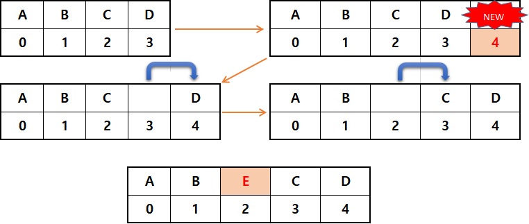그럴경우, 이전에 있던 값들을 한칸씩 뒤로 옮긴 후 넣게된다.