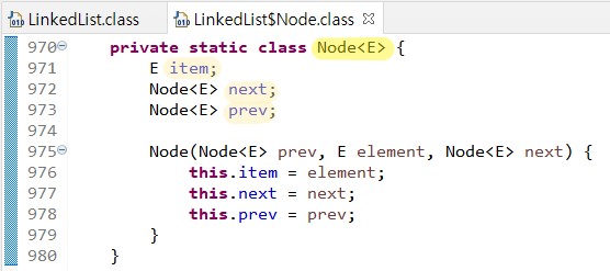 java.util.LinkedList를 살펴보면 Node라는 것을 이용하여 여러 요소들을 이어주는 것(link)을 볼 수 있다.